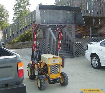 Mark R. from McKees Rocks, PA built this front end loader (and micro hoe) for his Cub Cadet 125 garden tractor